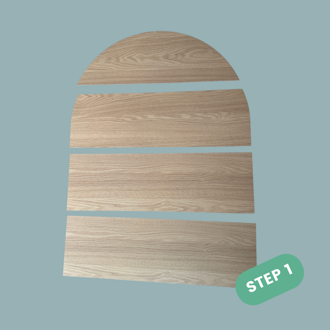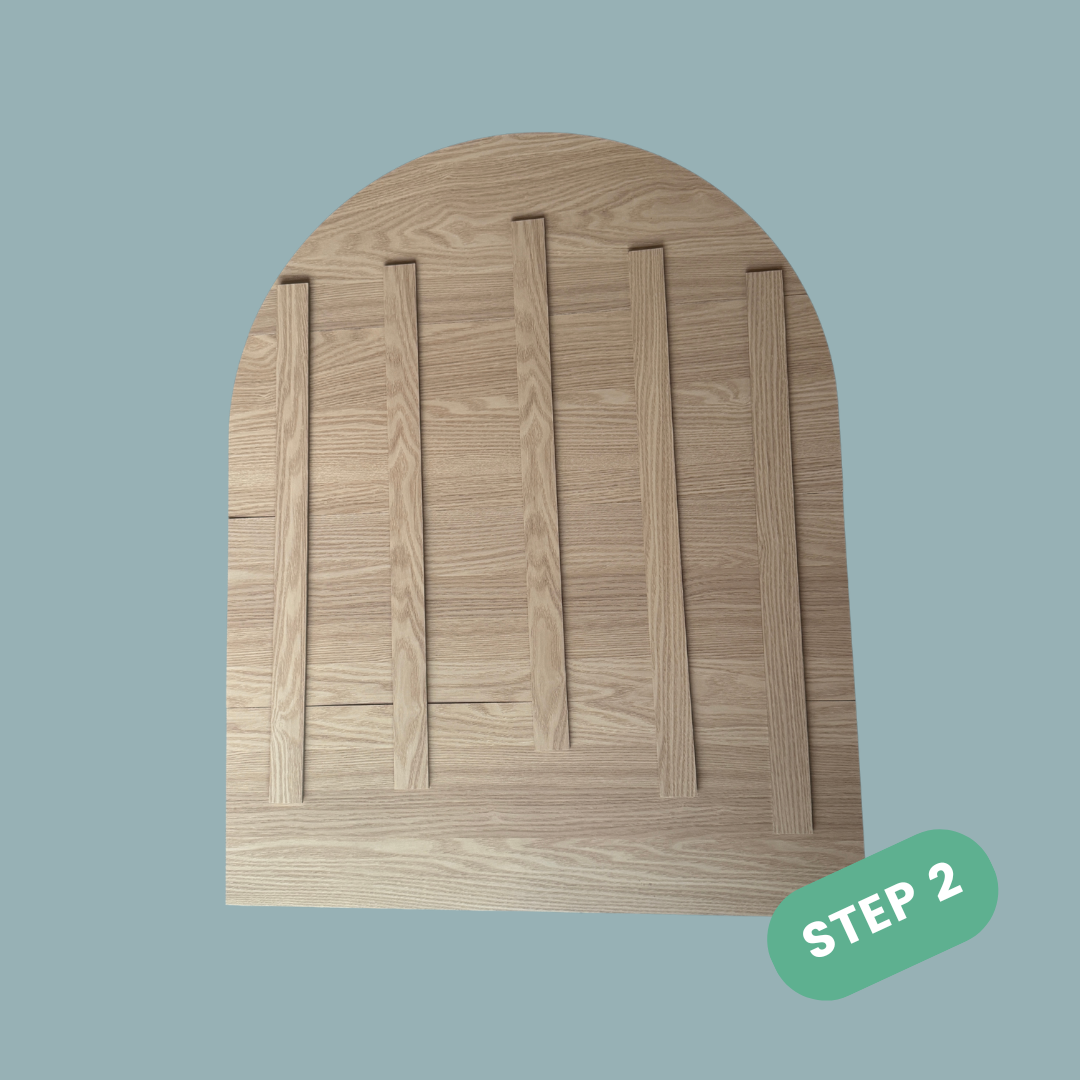 Peel the adhesive backing on each wooden strip and press firmly. (Take your time — this step ensures strong support.)