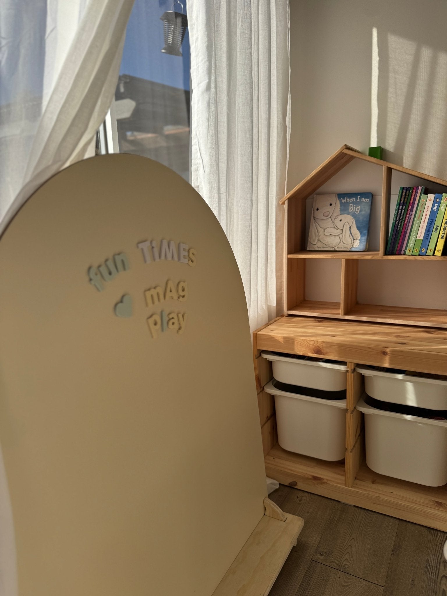 Whether it's showcasing vibrant artwork, playing, or creating interactive learning spaces, MagPlay's magnetic feature adds a dynamic and versatile dimension to your walls. The magic doesn't stop there – it also seamlessly integrates with a variety of magnetic toys and accessories, offering a world of exploration and play for your little ones.